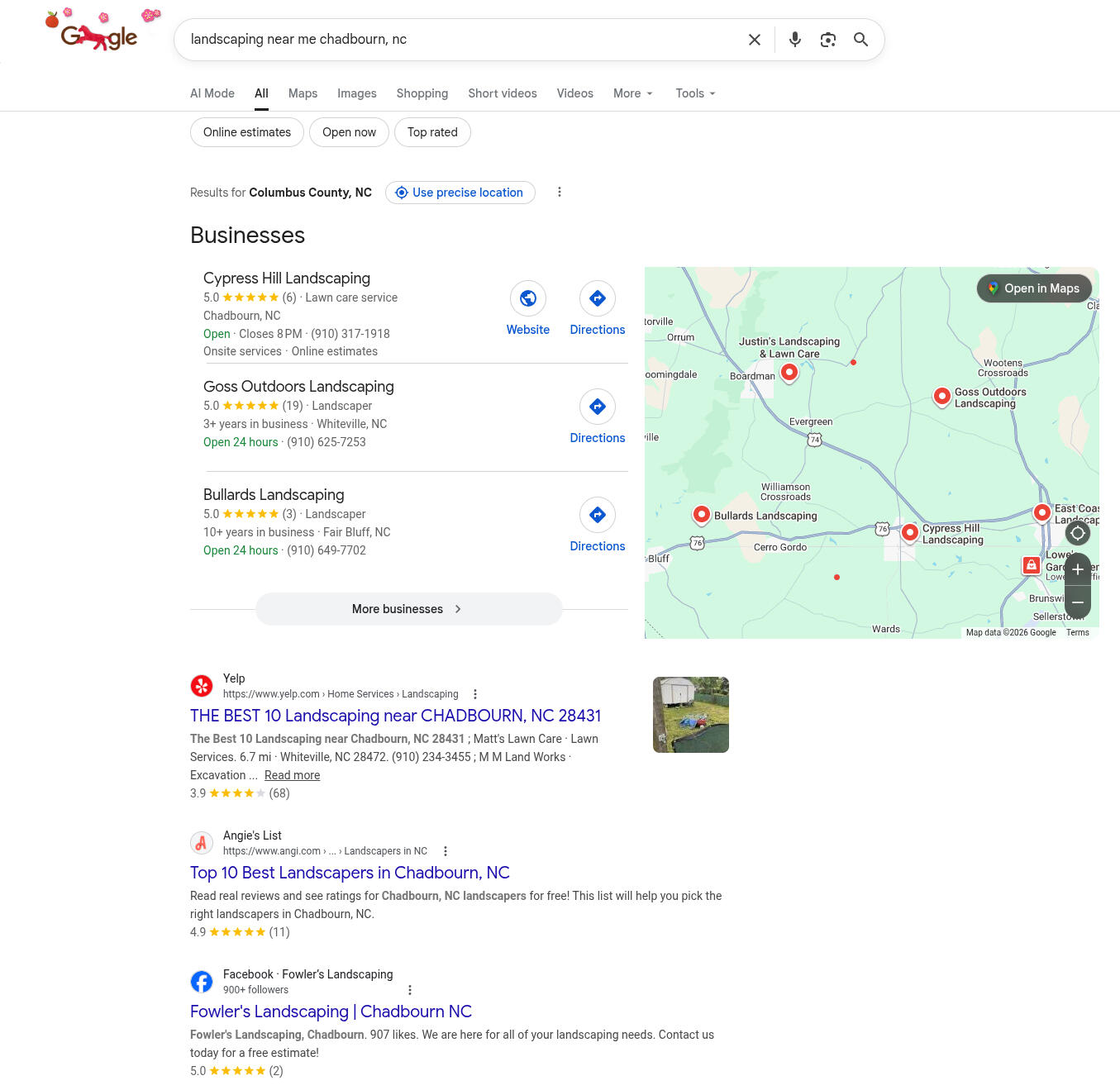 *Websites made for local business owners in Columbus County.